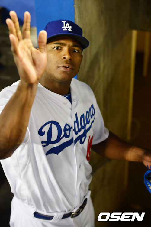 경기를 마치고 다저스 푸이그가 아쉬운 표정으로 손짓하고 있다. / rumi@osen.co.kr