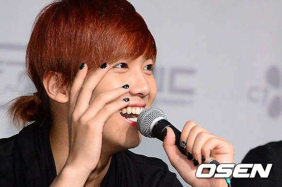콘서트에 앞서 FT아일랜드 이홍기가 기자회견을 하며 질문에 답을 하고 있다.