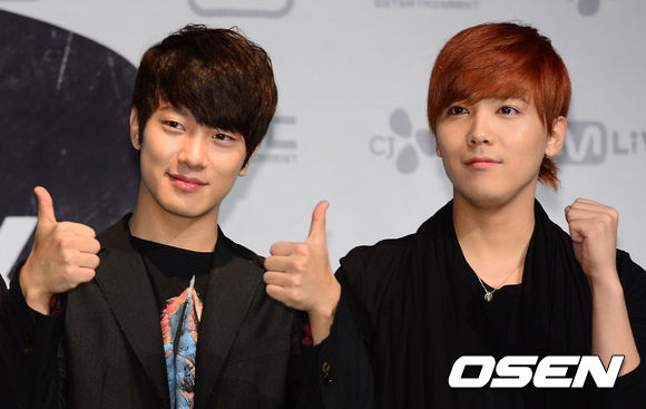 콘서트에 앞서 FT아일랜드 최민환, 이홍기가 포토타임을 하고 있다.
