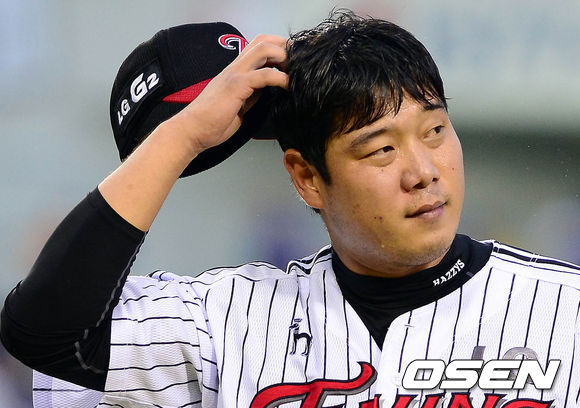 29일 오후 서울 잠실구장에서 열린 '2013 한국야쿠르트 세븐 프로야구' LG 트윈스와 삼성 라이온즈의 경기 2회초 1실점으로 마친 류제국이 덕아웃으로 향하며 머리를 긁적이고 있다.