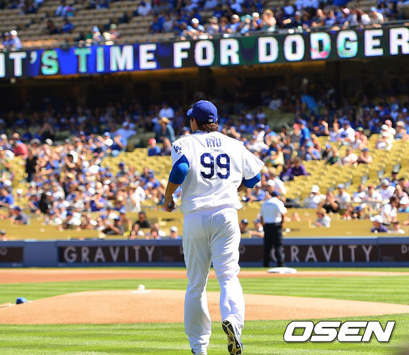 30일 (이하 한국시간) 미국 캘리포니아주 로스앤젤레스 다저스타디움에서 열린 2013 메이저리그 LA 다저스와 콜로라도 로키스의 경기,류현진이 마운드에 오르고 있다.