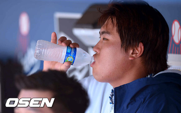 4회초 교체 후 다저스 류현진이 물을 마시고 있다. / rumi@osen.co.kr
