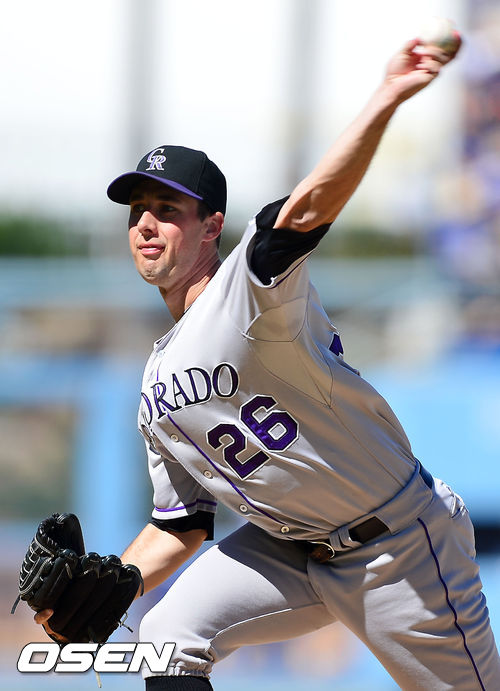 30일 (이하 한국시간) 미국 캘리포니아주 로스앤젤레스 다저스타디움에서 열린 2013 메이저리그 LA 다저스와 콜로라도 로키스의 경기,콜로라도 선발 제프 프랜시스가 힘차게 공을 뿌리고 있다.