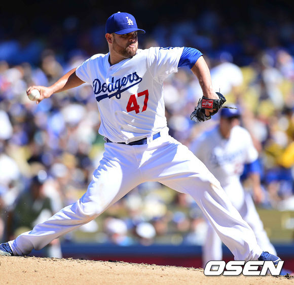 5회초 류현진과 교체된 다저스 놀라스코 투수가 역투하고 있다. / rumi@osen.co.kr