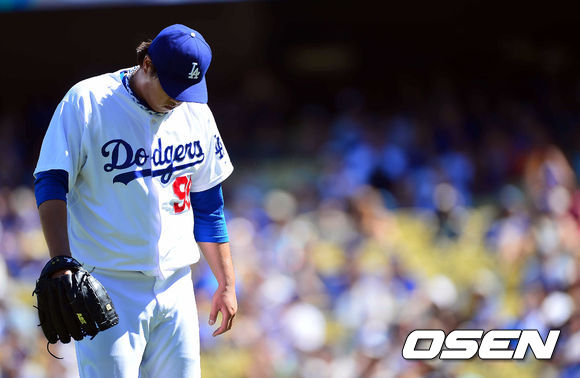4회초 이닝종료 후 다저스 류현진이 고개를 숙인채 더그아웃으로 들어가고 있다. / rumi@osen.co.kr