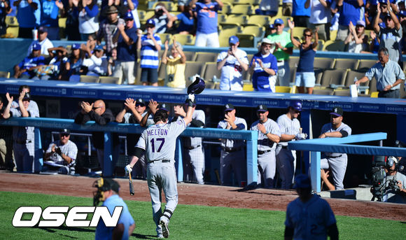 헬튼은 30일(한국시간) 미국 캘리포니아 다저스타디움에서 열린 LA 다저스전에서 4타수 1안타를 기록했다. 그 상대는 '코리안 몬스터' 류현진이었다. 헬튼이 9회 마지막 타석에 들어서자 다저스 관중들과 양측 선수들 모두 기립박수를 보냈다. 이 타석에서 그는 삼진을 당했으나 들어가는 순간까지 관중들의 박수가 쏟아졌고 그는 헬멧을 벗어 화답했다.