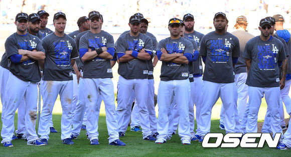 경기를 마치고 다저스의 지구우승 기념 행사가 진행되고 있다./ rumi@osen.co.kr