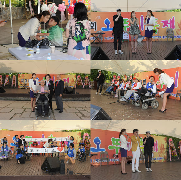 그는 공연을 위해 무대에 올라온 뇌성마비장애인들과 재회의 인사를 나누며 남다른 친밀감을 표하는 등 훈훈한 장면을 보였다.