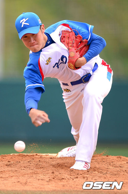 대표팀 선발투수 박종훈이 역투하고 있다.