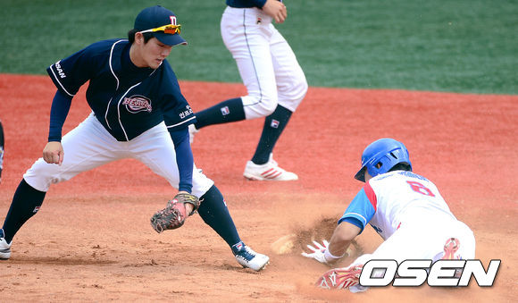 3회말 2사 1루 대표팀 이창진이 2루 도루를 성공하고 있다.