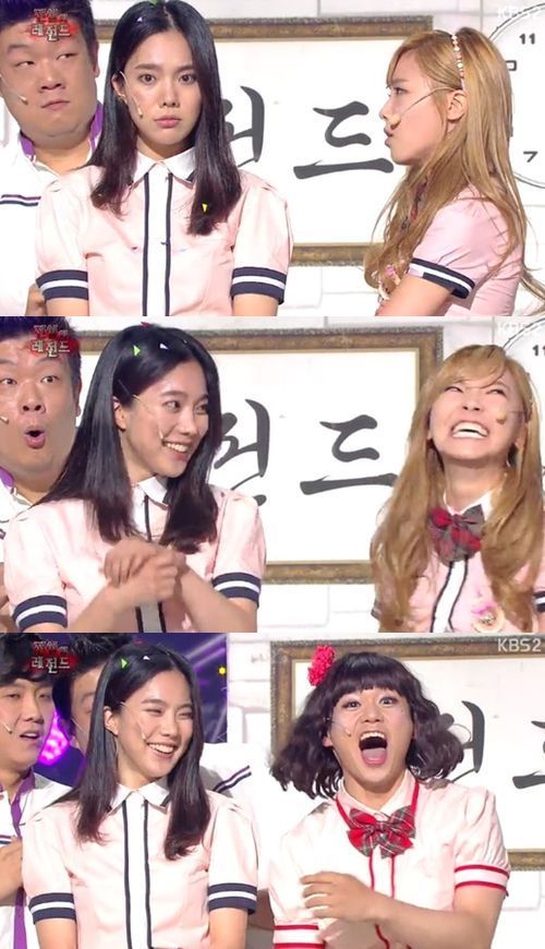 김나희는 29일 방송된 KBS 2TV '개콘-레전드'깜찍한 교복 차림으로 출연, 미모의 전학생으로 나서면서 동료인 이동윤, 서태훈, 신보라, 유민상, 김대성, 이상호, 이상민 등의 기를 죽였다. 금발의 신보라는 김나희 등장에 폭풍 분노를 표현했지만 태연하게 자신의 미모를 과시하는 김나희의 기세에 눌리고 말았다.