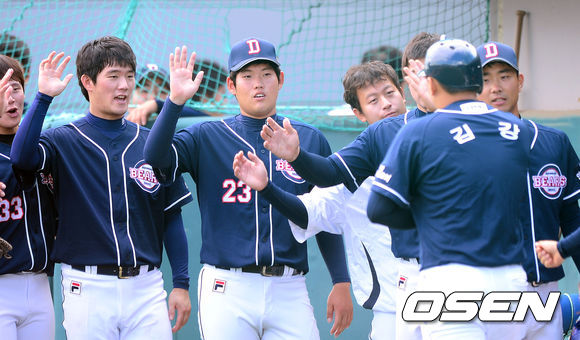 윤영환 감독이 이끄는 '제6회 톈진동아시아경기대회' 야구 국가대표팀이 30일 오후 경기도 고양 국가대표야구장에서 두산 베어스와 연습경기를 가졌다.