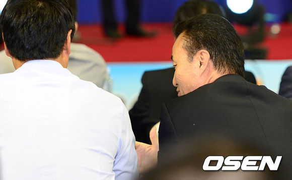 창원 LG가 1순위가 나오자 김진 감독이 기뻐하고 있다.