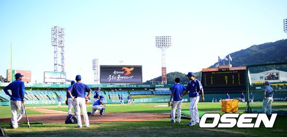 30일 오후 대전 한밭야구장에서 열리는 '2013 한국야쿠르트 세븐 프로야구' 한화 이글스 대 삼성 라이온즈의 경기를 앞두고, 삼성 선수들과 코칭스태프가 훈련을 진행하고 있다.