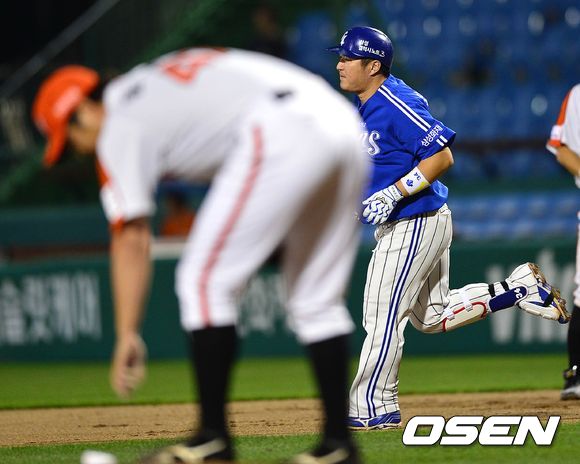 2회초 삼성 공격, 4번타자 최형우가 선제 우월 솔로포를 날리고 그라운드를 돌고 있다.