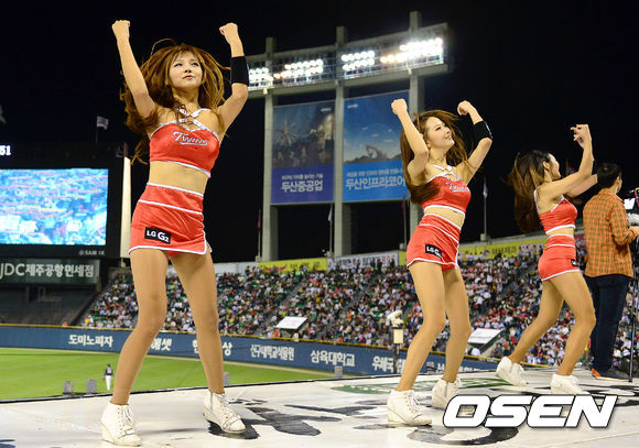 30일 오후 서울 잠실야구장에서 열린 2013 한국야쿠르트 세븐프로야구 LG 트윈스와 두산 베어스의 경기, LG 치어리더가 화려한 공연을 펼치고 있다.