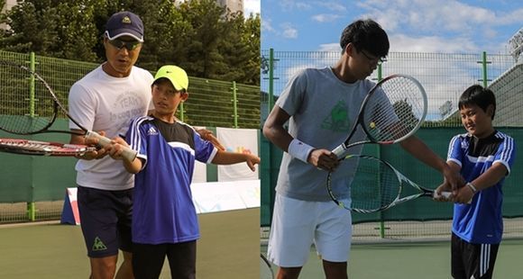 삼성증권 테니스단 전현직 선수들이 유소년 테니스 유망주 일일교사로 나섰다.