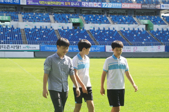 평소 축구에 관심이 많은 세 학생은 선수단을 비롯해 프런트 등 축구단에 소속된 사람들이 하는 일에 대해 설명을 듣고 대전월드컵경기장 곳곳을 견학하며 미래의 꿈에 대해 생각해보는 소중한 시간을 가졌다.