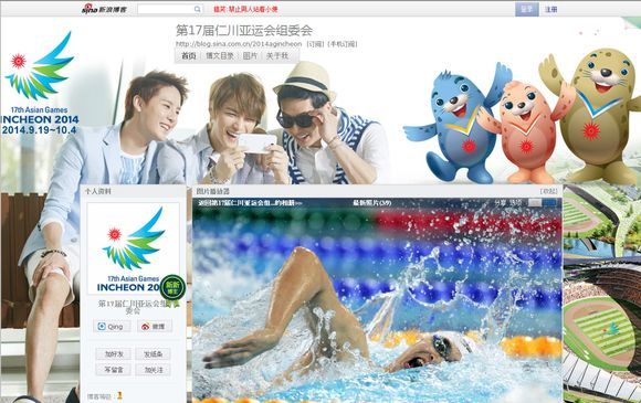 2014 인천아시아경기대회 조직위원회(위원장 김영수)는 SNS를 통한 중국어권 국가의 홍보 강화를 위해 중문 블로그(http://blog.sina.com.cn/2014agincheon)와 웨이보(http://weibo.com/2014agincheon)를 1일부터 개설 운영한다.