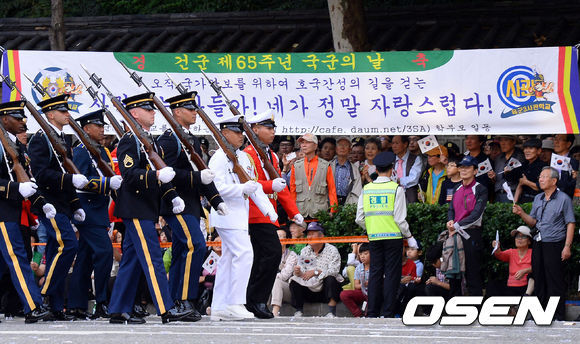 [OSEN=이슈팀] 건군 65주년을 기념하는 국군의 날 행사가 1일 서울공항과 광화문 일대에서 화려하게 열렸다. 특히 이날은 광화문 일대 세종대로를 군 병력과 장비 차량들이 시가행진을 하는 등 지난 10년 사이 최대 규모로 치러졌다.