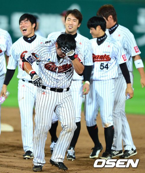 롯데는 1일 부산 사직구장에서 열린 ‘2013 한국야쿠르트 세븐 프로야구’ LG와 시즌 16차전에서 4–3로 승리, LG에 치명적인 1패를 안겼다.