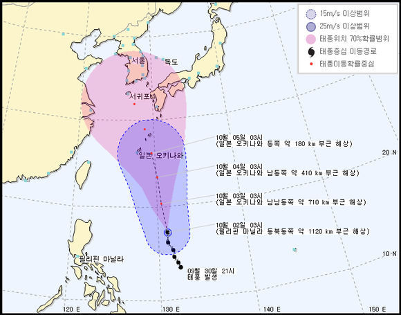 [OSEN=이슈팀] 제 23호 태풍 피토(FITOW)가 15년 만의 10월 태풍이 될 것인지 관심이 모이고 있다.
