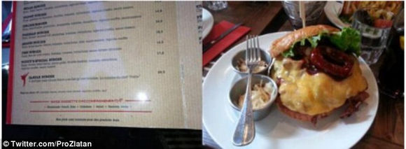 '데일리메일'에 따르면 장-필립 그랜딘이라는 사람이 주인으로 있는 한 카페에서는 무게 600g의 '르 즐라탄' 버거를 판매하고 있다. '르 즐라탄' 버거는 힘이 넘치고 강력한 파리생제르맹(PSG)의 스트라이커 이브라히모비치에게서 영감을 받아 존경을 표시하는 의미로 만들어졌다.