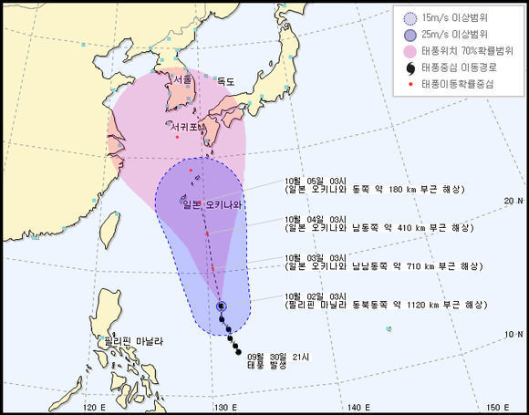 기상청은 태풍 피토가 계속 한반도를 향해 북상할 것으로 예측하고 있으며, 오는 5일 오전 3시쯤에는 일본 오키나와 동쪽 약 180km 부근 해상으로 이동할 것으로 내다봤다.