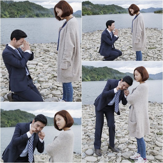 사진 속 배수빈은 황정음에게 미안하다는 제스쳐를 취하고 곧이어 무릎을 꿇고 진심으로 사죄한다. 또 배수빈은 비장의 애교스킬로 황정음의 마음을 녹여 화해가 성사되는 모습이다.