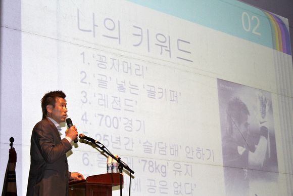 강의를 마친 김병지 선수는 “강의를 준비하는데 정말 많은 노력과 시간이 걸렸지만 내 자신을 다시한 번 되돌아 볼 수 있어서 정말 소중한 시간이었다. 오늘 내 강의가 대학생들에게 조금이나마 인생 설계하는데 도움이 되었으면 좋겠다”며 소감을 전했다.