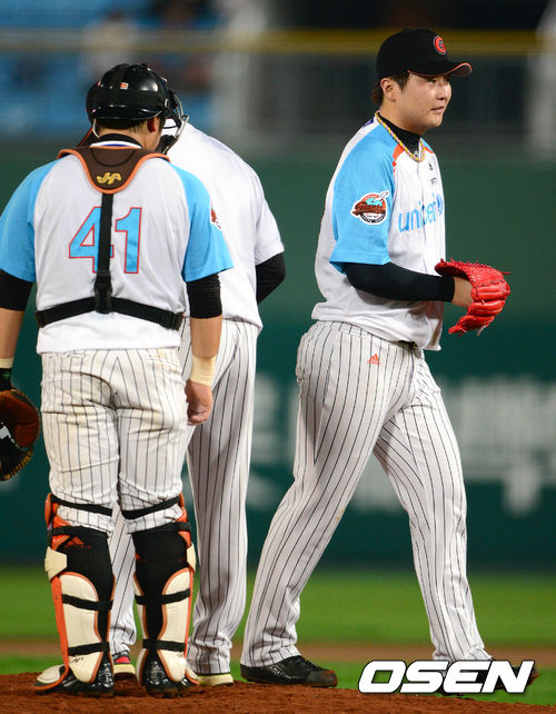 6회초 무사 1루에서 롯데 투수 이상화가 마운드를 내려가고 있다.