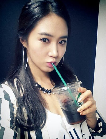 사진 속 유리는 커피를 마시며 카메라를 바라보고 있다. 특히 들고 있는 컵보다 작은 얼굴 크기가 보는 이들의 부러움을 자아낸다.