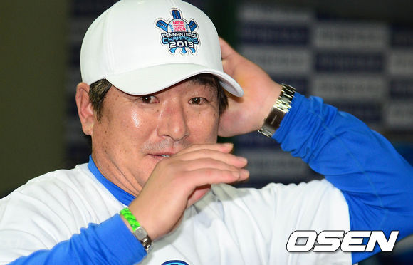 삼성 류중일 감독이 우승 모자를 쓰고 있다./sunday@osen.co.kr