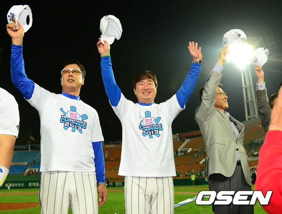 삼성 류중일 감독이 관중석을 향해 감사의 인사를 하고 있다./sunday@osen.co.kr