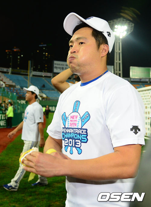 삼성 박한이가 세레모니를 마치고 더그아웃으로 가고 있다./sunday@osen.co.kr
