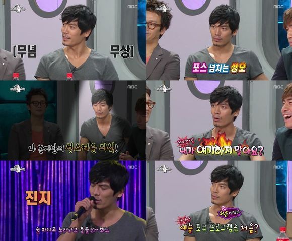 갑작스러운 욕 대사 연기에 MC들을 당황케 하기도 했다. 욕 대사라 방송에서는 할 수 없다며 머뭇거리던 그에게 MC들이 연기인데 뭐 어떠냐며 계속 요청하자 그는 거리낌 없이 욕 대사 연기를 선보여 MC들을 깜짝 놀라게 했다. 이 모습을 브라운관을 통해 바라보는 이들은 그야말로 웃음바다.