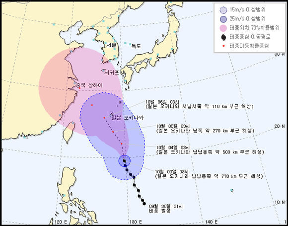 태풍 피토 예상경로는 오는 4일 3시 일본 오키나와 남남동쪽 약 500km 부근 해상을 지날 것으로 보인다. 기상청은 4일을 기점으로 태풍 피토 예상경로로 중국 상하이 방면을 지목했다. 하지만 한반도에 영향이 없는 것은 아니다. 오는 6~7일 제주도와 전라남도 일부가 직·간접적인 영향권에 들어설 것으로 보인다.