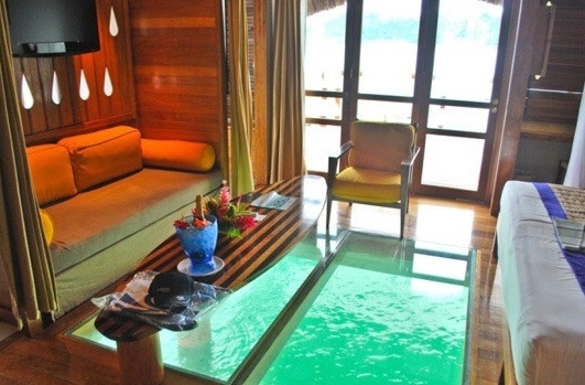 이 유리 바닥 리조트는 폴리네시아 보라보라섬의 수상 방갈로 회사가 홍보 사진으로 홈페이지에 올린 것으로 알려졌다.