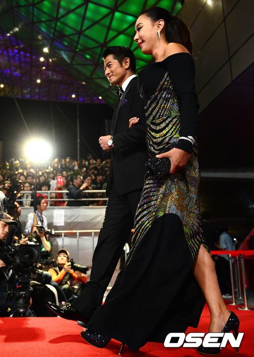 배우 강수연과 곽부성이 포토타임을 마치고 이동하고 있다.