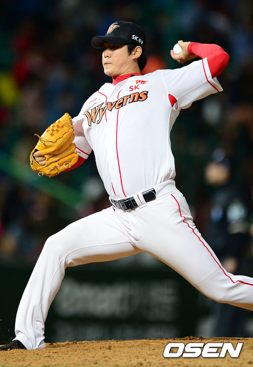 3일 오후 인천 문학구장에서 열린 '2013 한국야쿠르트 세븐 프로야구' SK 와이번스와 넥센 히어로즈의 경기, 7회초 SK 박희수가 역투하고 있다.