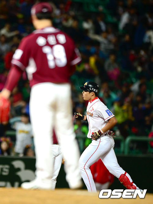 3일 오후 인천 문학구장에서 열린 '2013 한국야쿠르트 세븐 프로야구' SK 와이번스와 넥센 히어로즈의 경기, 7회말 무사 SK 한동민이 솔로 홈런을 때린 뒤 베이스를 돌고 있다.