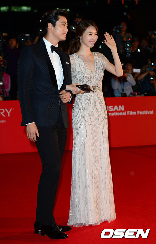 배우 옥택연과 이연희가 레드카펫을 밟고 있다.