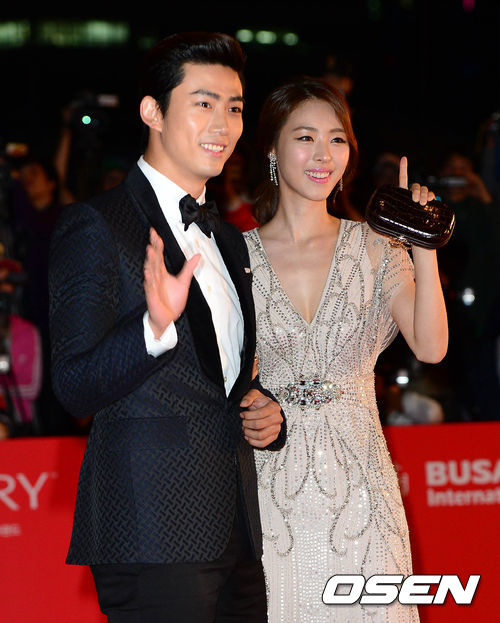 배우 옥택연과 이연희가 레드카펫을 밟고 있다.