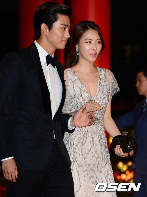 배우 옥택연과 이연희가 레드카펫을 밟고 있다.