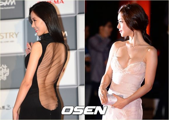 홍수아 역시 가슴의 절반가량을 노출한 연한 핑크빛의 파격드레스를 입고 레드카펫에 올랐다. 평소 '베이글녀'로 사랑받고 있는 만큼 육감적인 몸매를 드러냈다.