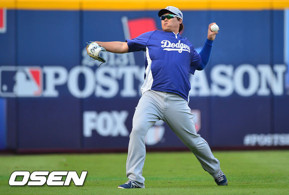 4일 (이하 한국시간) 미국 조지아 애틀랜타 터너필드에서 열린 2013 메이저리그 애틀랜타 브레이브스와 LA 다저스의 내셔널리그 디비전시리즈(5전3선승제) 1차전, 경기 전 다저스 류현진이 피칭 훈련을 하고 있다.