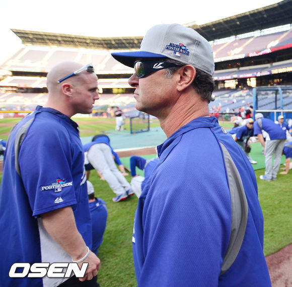 4일 (이하 한국시간) 미국 조지아 애틀랜타 터너필드에서 열린 2013 메이저리그 애틀랜타 브레이브스와 LA 다저스의 내셔널리그 디비전시리즈(5전3선승제) 1차전, 경기 전 다저스 훈련시간에 돈 매팅리 감독이 선수들의 훈련을 지켜보고 있다.