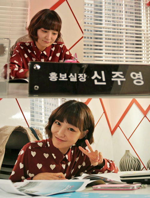 사진 속에서 극 중 아웃도어 패션그룹 BY의 홍보실장으로 연기를 펼치고 있는 신소율은 드라마 속 자신의 사무실 책상에 앉아 포즈를 취하고 있다.