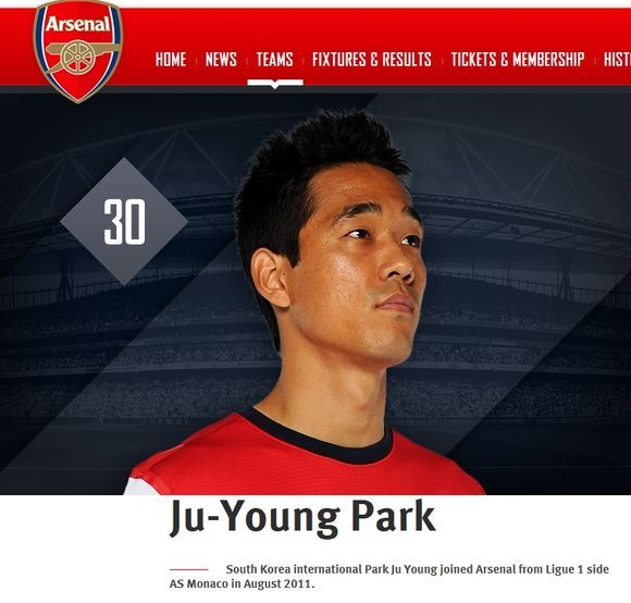 4일(한국시간) 박주영은 공식 홈페이지에 이름을 올렸다. 새로운 아스날의 유니폼을 입은 박주영의 프로필은 등록했다. 등번호 30번을 부여받은 박주영은 공격진에 포함됐다. 아스날은 박주영에 대해 "AS 모나코에서 2011년 이적"이라고 설명했다. 박주영과 함께 새롭게 합류한 니클라스 벤트너도 이름을 올렸다.