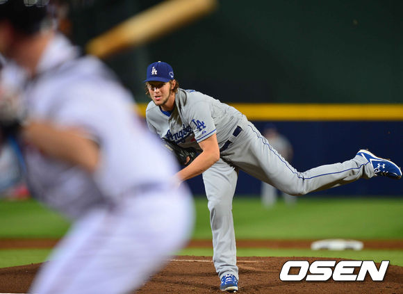 4일 (이하 한국시간) 미국 조지아 애틀랜타 터너필드에서 열린 2013 메이저리그 애틀랜타 브레이브스와 LA 다저스의 내셔널리그 디비전시리즈(5전3선승제) 1차전,1회말 다저스 선발투수 커쇼가 역투하고 있다.